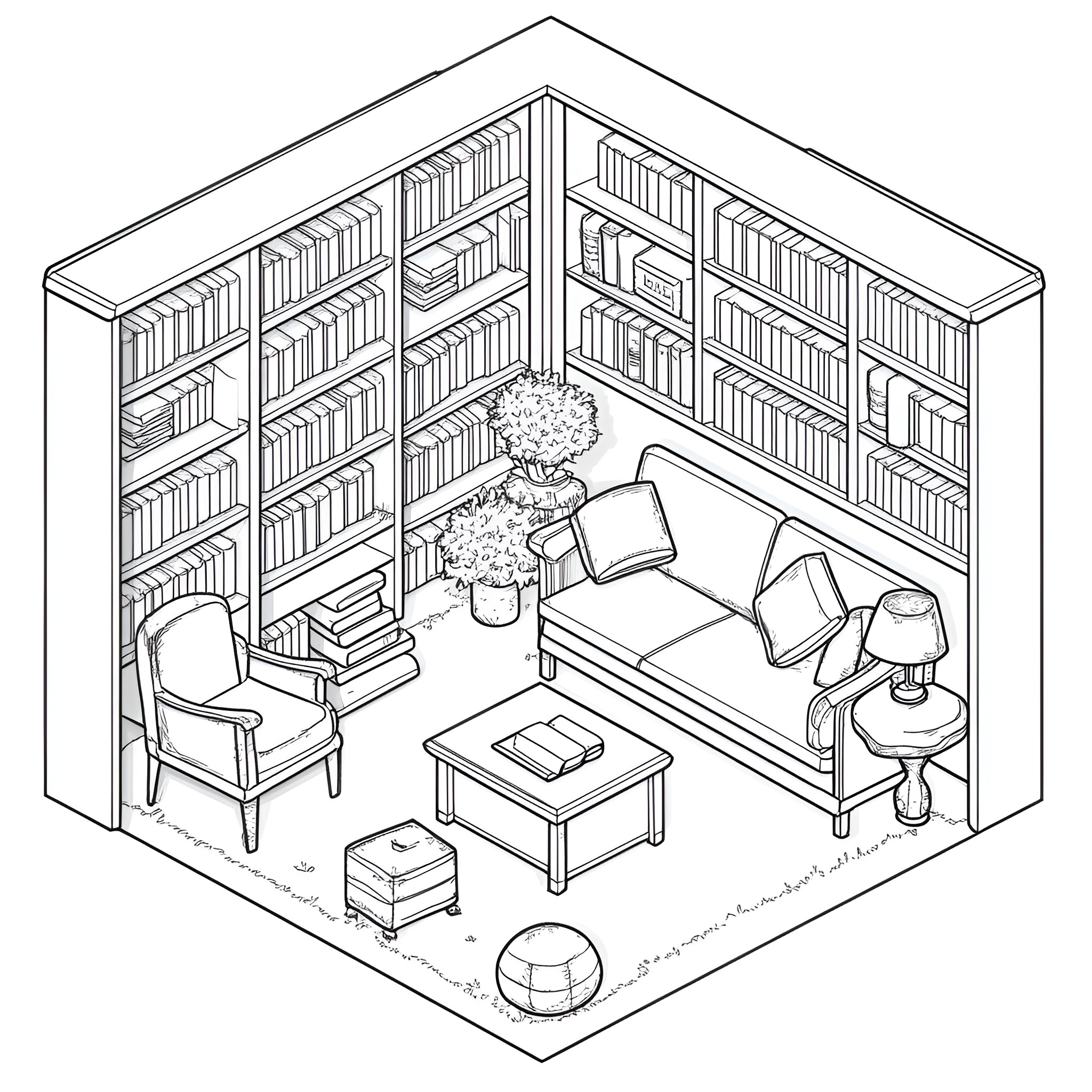 Download Cozy Bedroom in Isometric Style Coloring pages Online
